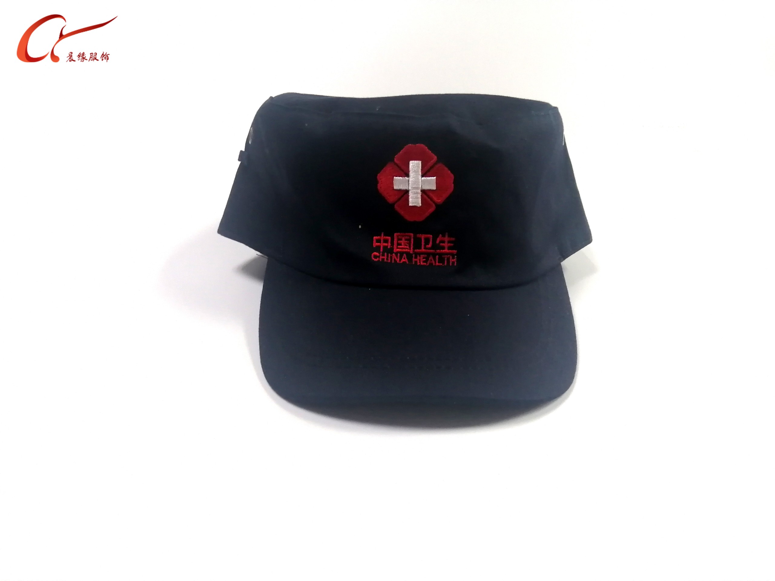 (5)帽子有中国卫生标识,采用多彩立体电脑绣花制作,样式须符合卫生系统统一标识的要求,颜色采用金光红。
